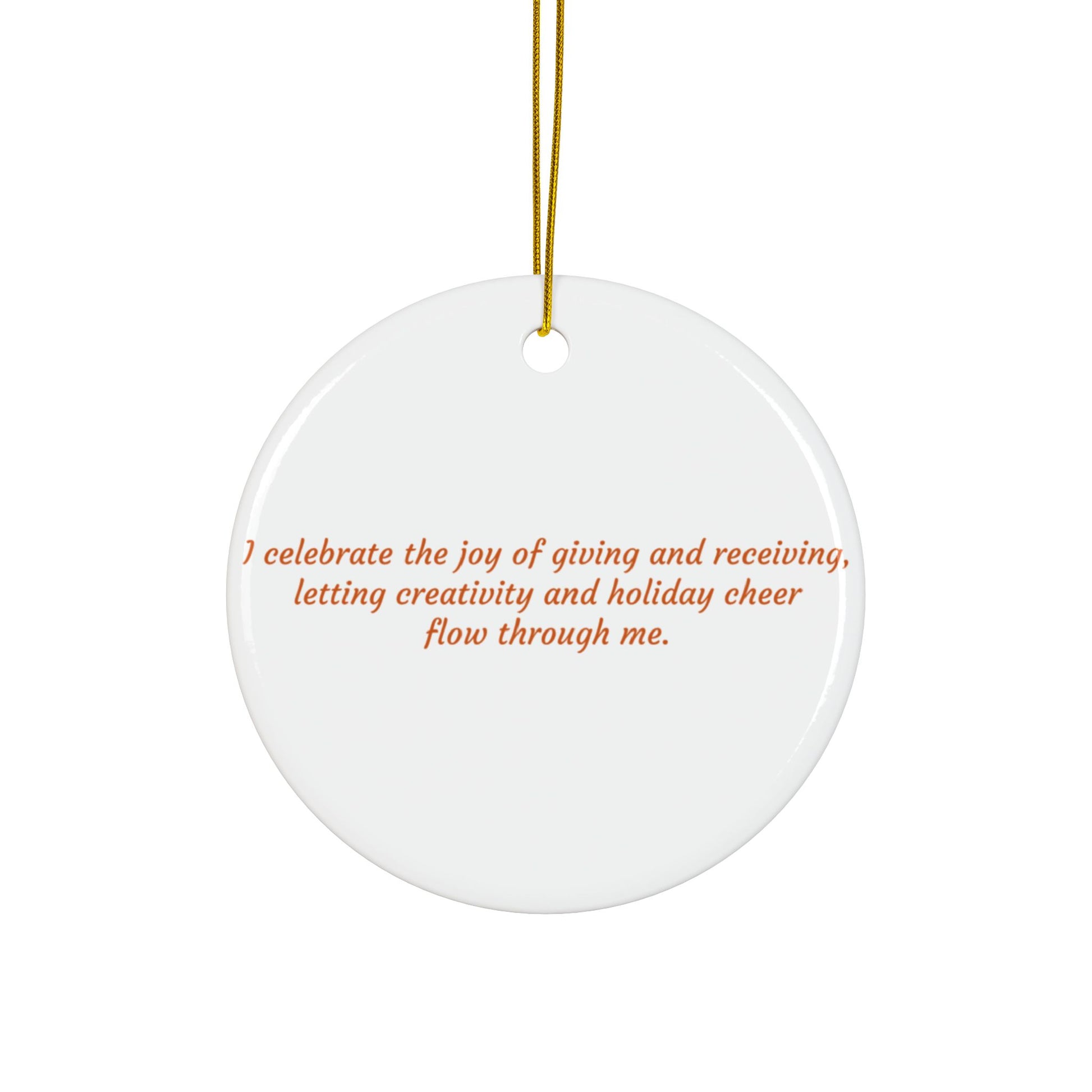 Embrace the spirit of joy and creativity this season with the two-sided ceramic Sacral Chakra ornament. The front displays a radiant chakra design, while the back carries a Christmas affirmation that celebrates the beauty of giving, receiving, and allowing festive cheer to flow freely. Made with durable ceramic and a glossy finish, this ornament adds both meaning and elegance to your holiday tree — or makes a thoughtful gift for loved ones.