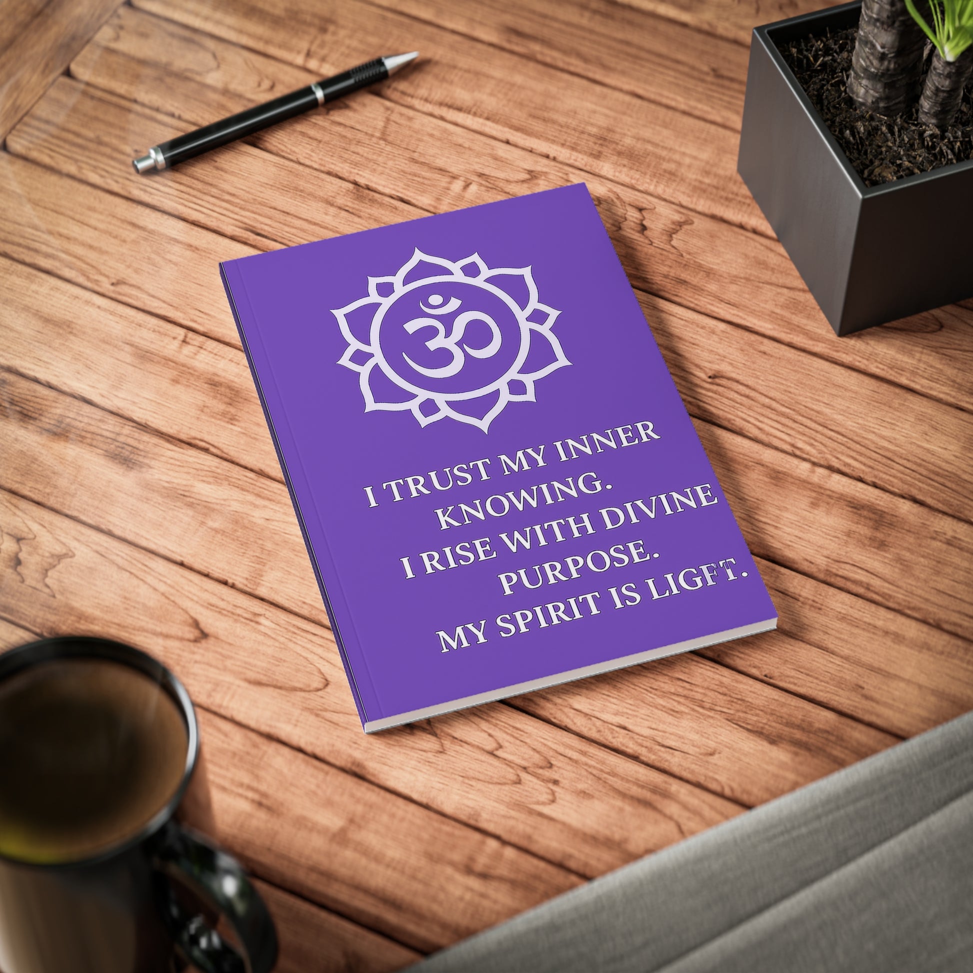 This A5 softcover notebook is your sacred space for inner reflection and divine alignment. Designed with the energy of the Crown Chakra, it supports spiritual growth, intuitive expansion, and deepened awareness.