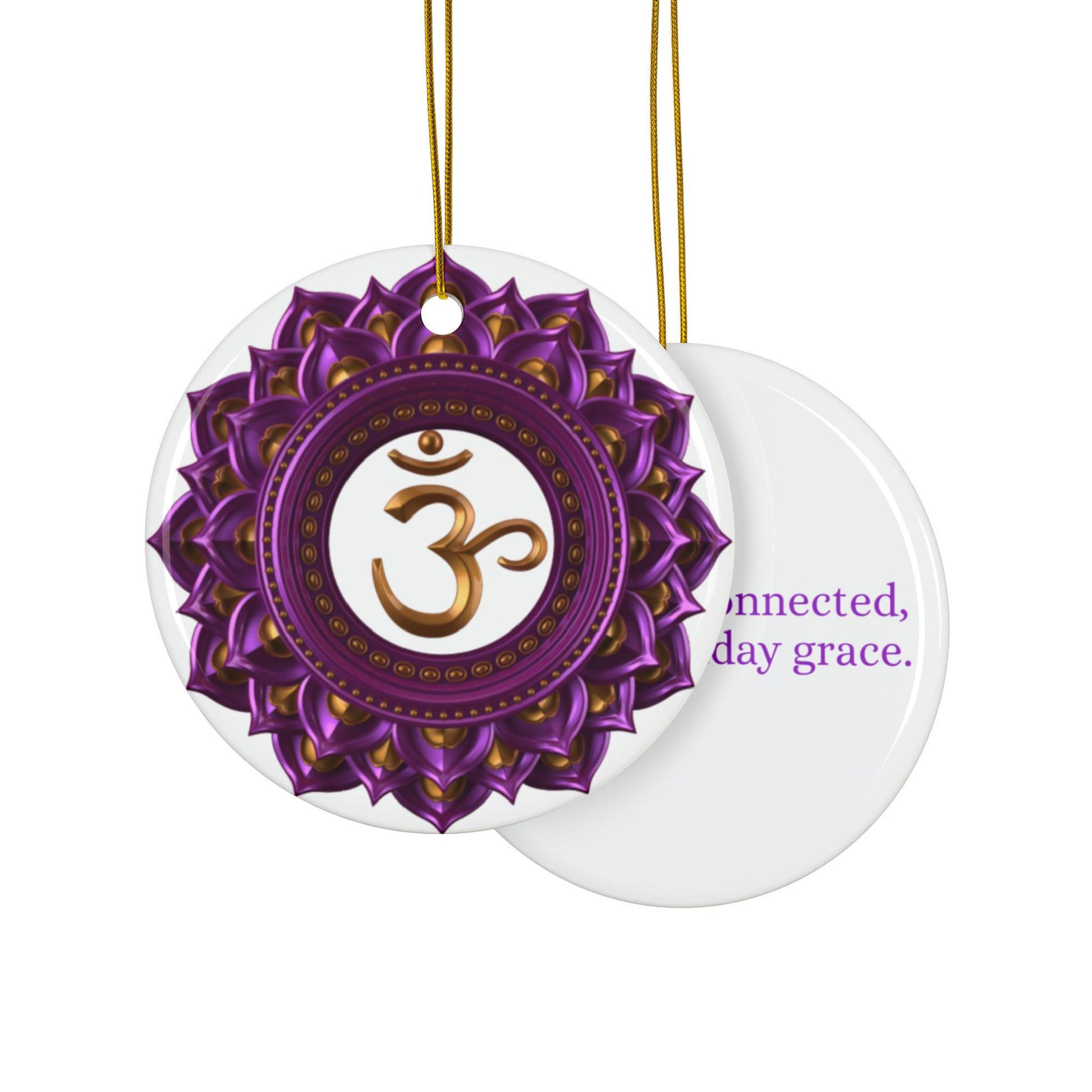 Elevate your holiday tree with divine connection and spiritual joy. This ceramic Crown Chakra ornament features its violet symbol on one side, with an affirmation of unity and higher awareness on the other. A radiant ceramic keepsake bringing sacred presence and peace to your home.