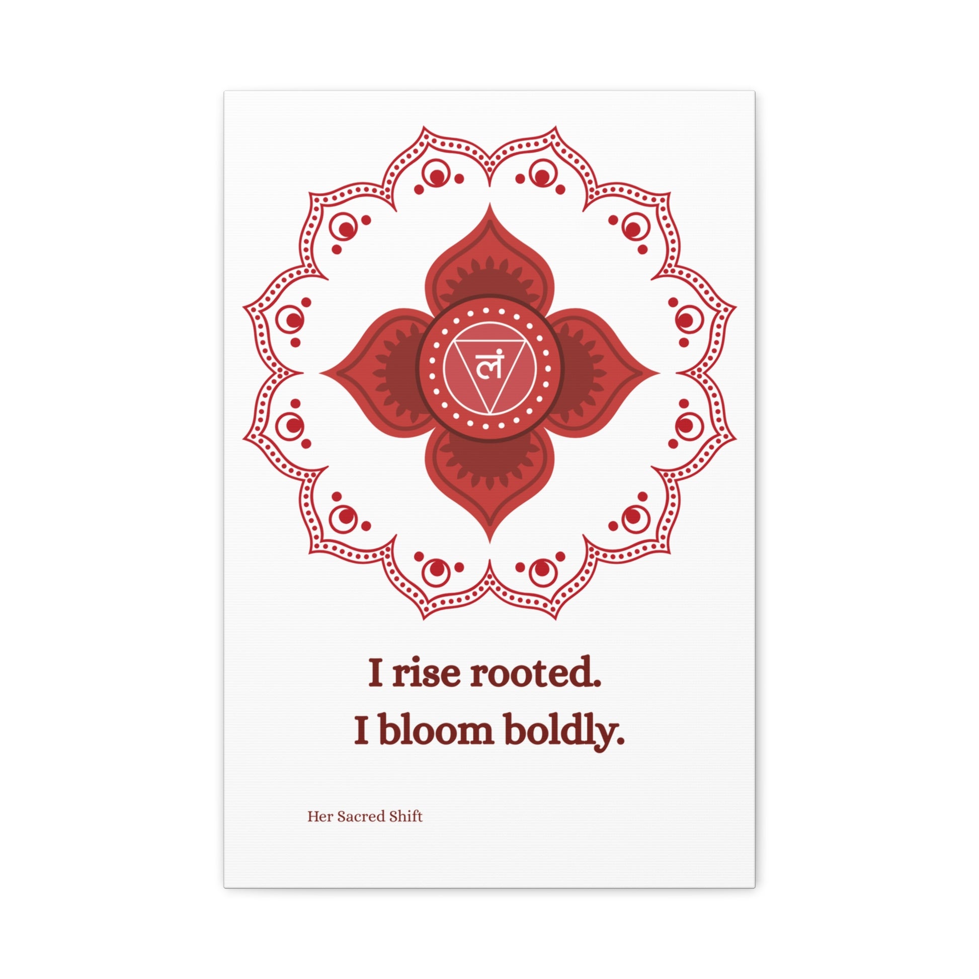 Root Chakra Canvas – “I Rise Rooted” Wall Art (Unframed)