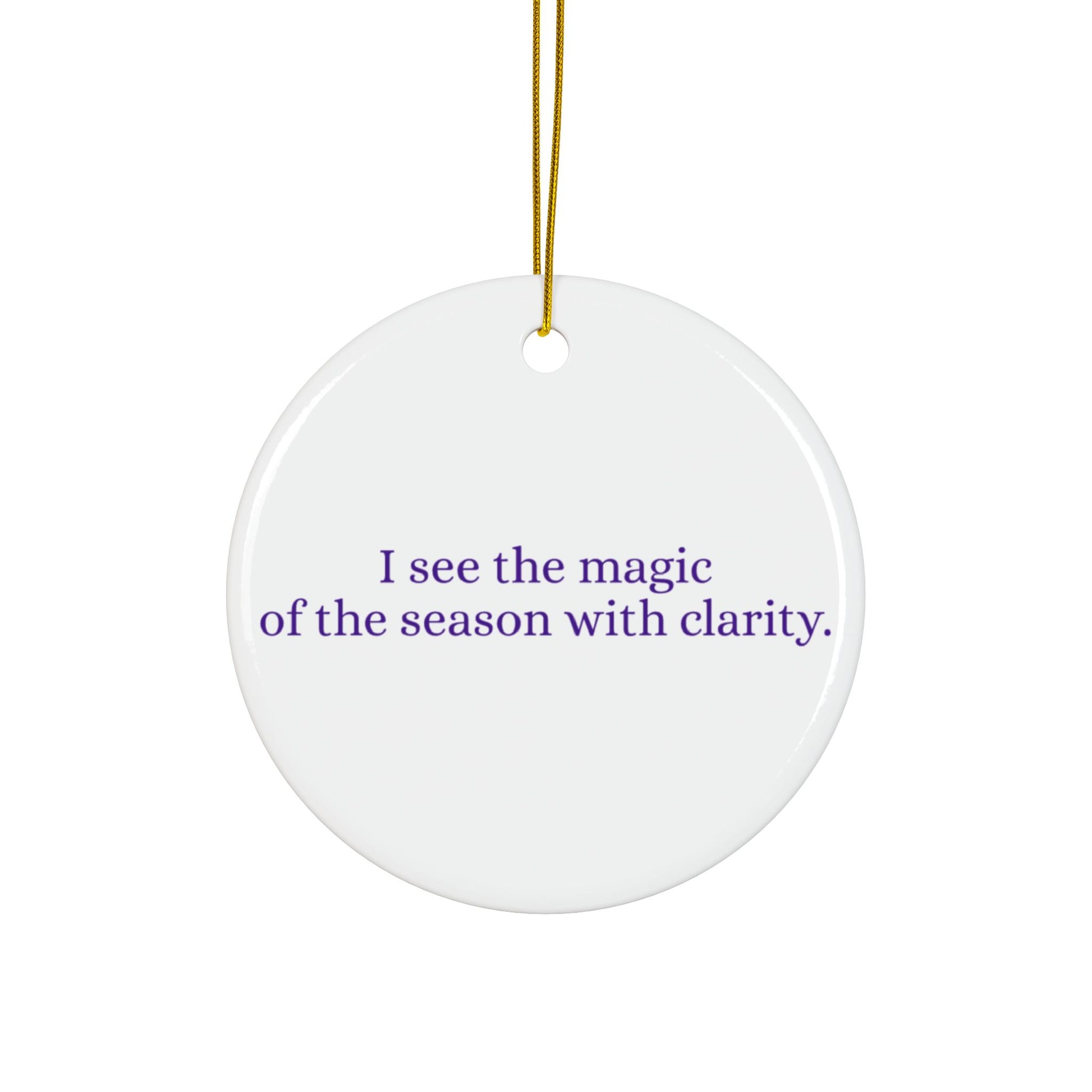 Embrace wisdom and inner guidance this Christmas. The ceramic Third Eye Chakra ornament, in indigo, highlights its symbol on one side and an affirmation of trust in intuition on the other. Durable and sacred, it’s perfect for adding clarity and spiritual alignment to the season of light.