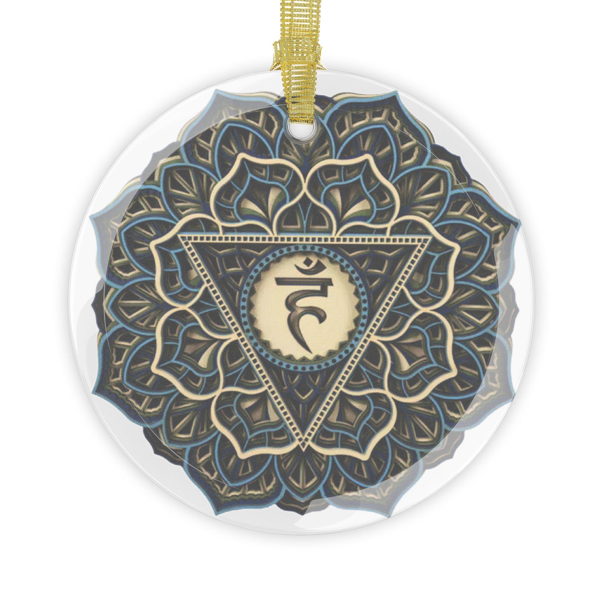 Throat Chakra Mandala Design Glass Ornament